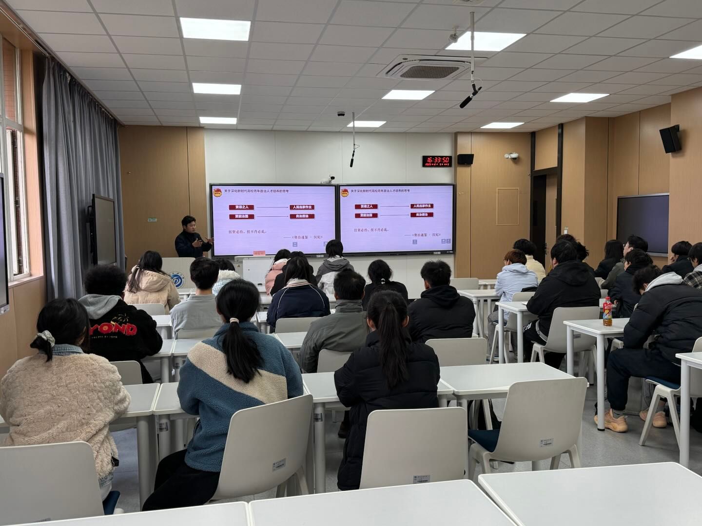 在同学们热烈的掌声中,本次思想指导主题课程圆满结束。通过此次团委对学生骨干的思想教育,大家都对党和团有了更深刻的理解,深化思想努力成为党的青年政治骨干,向着党员迈步。