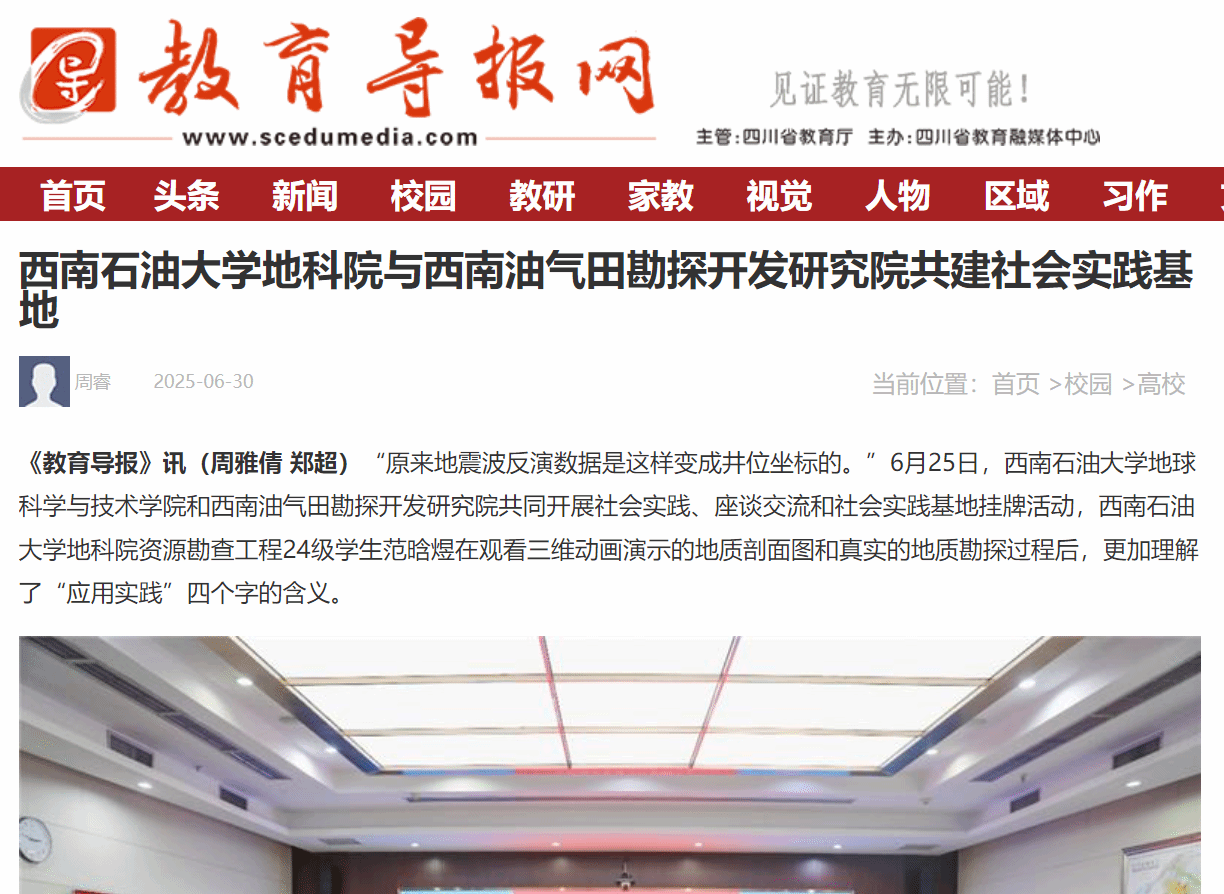 “原来地震波反演数据是这样变成井位坐标的。”6月25日,西南石油大学地球科学与技术学院和西南油气田勘探开发研究院共同开展社会实践、座谈交流和社会实践基地挂牌活动,西南石油大学地科院资源勘查工程24级学生范晗煜在观看三维动画演示的地质剖面图和真实的地质勘探过程后,更加理解了“应用实践”四个字的含义。