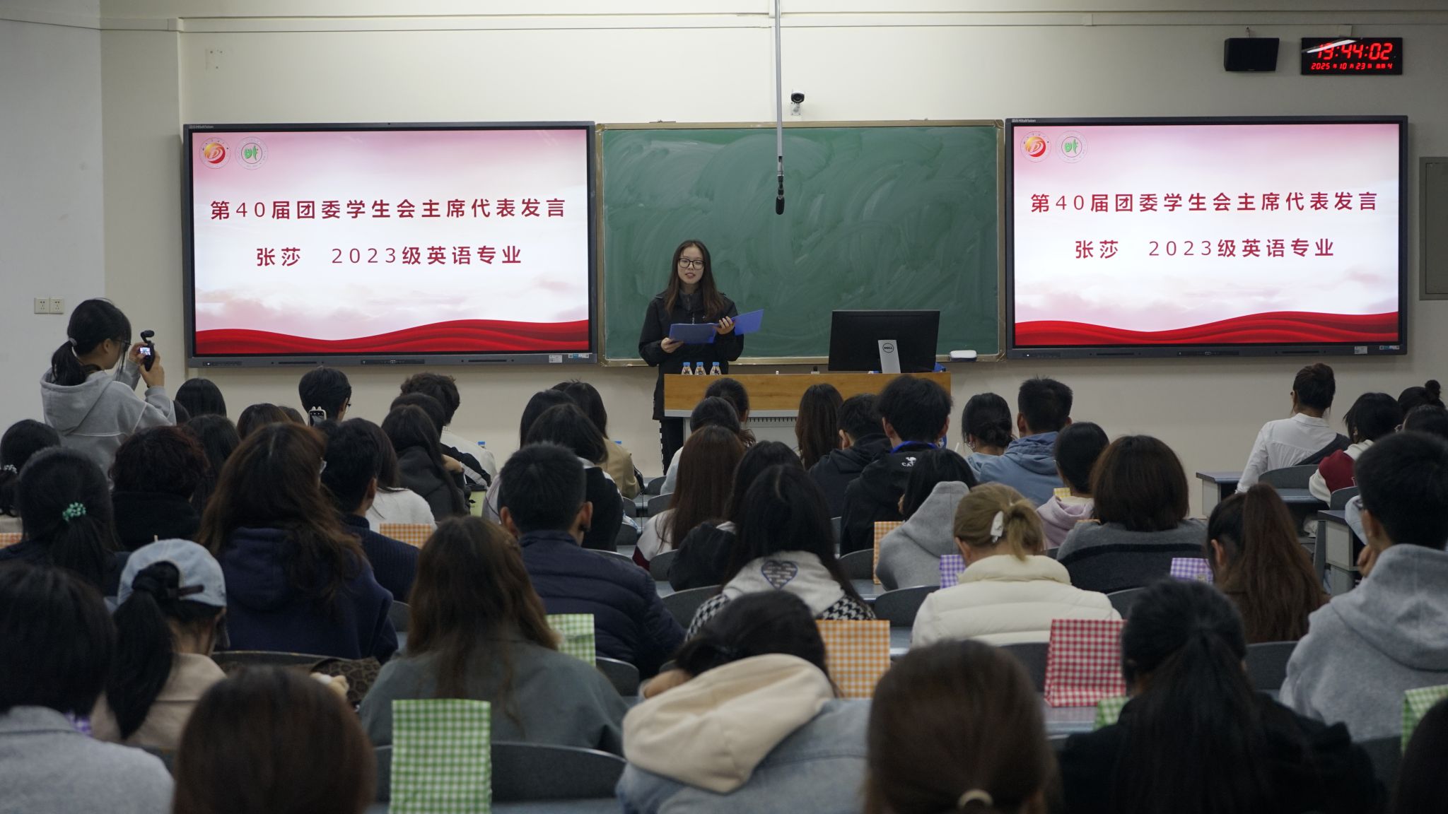 第39届团委学生会主席代表赵思诺在发言中回顾了三年来的工作历程,分享了宝贵的心得体会。她结合自身经历提出,要始终保持对工作的责任感与热爱,注重团队沟通与协作,在勇于尝试的同时更要善于总结反思,合理平衡学习与工作的关系。第40届团委学生会主席代表张莎对本学期学生会工作做出阶段性总结,并对未来工作进行了展望,她表示,新一届学生会将加强内部建设、坚持传承创新、强化服务意识,促进学习交流,努力让学生会成为同学们“想得起、找得到、靠得住”的重要力量。她希望与第40届团委学生会全体成员共同“扬帆起航,续写辉煌”。第40届团委学生会新委员代表孙菊敏在发言中阐述了工作理念。她表示,新成员要以“沉下去的倾听”深入了解同学需求,以“活起来的创造”丰富活动形式,以“靠得住的担当”履行服务职责,用实际行动践行学生会的服务宗旨。