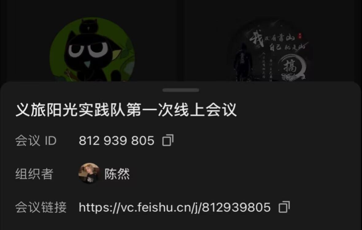 5月11日,义旅阳光阳光协会为即将开展的暑期三下乡活动,有条不紊地进行着筹备工作。通过线上会议细致规划活动安排,之后在一期操场展开体能训练,提升团队成员身体素质,确保活动顺利开展。参与暑期三下乡活动的全体成员准时进入飞书平台。会议由陈然主持,围绕三下乡活动的各项事宜展开了深入讨论与安排。