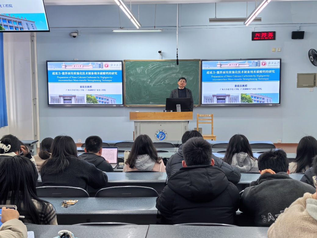 3月10日下午,广西大学童张法教授受邀来到我校,在明德楼A203作题为“超重力-微界面传质强化技术制备纳米碳酸钙的研究”的学术报告,报告会由化工院副院长张辉主持,化工院部分师生参与本次报告会。