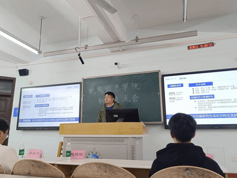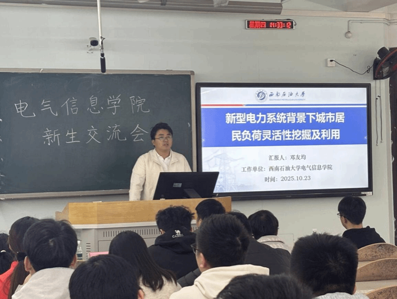 本次学术交流活动中,邓友均老师以“新型电力系统背景下城市居民负荷灵活性挖掘及利用”为主题,系统讲解该研究方向的专业知识,同时针对研究新生在学术入门阶段的需求,提出了具有实操性的指导性建议。赵鹏程老师结合自身读研期间的探索经历与未来规划经验,鼓励同学们积极与导师、同学开展学术交流,建议大家尽早明确研究方向、制定研究生阶段规划,并秉持脚踏实地的态度与勇于探索的精神。