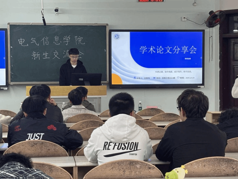 为帮助研一新生快速适应研究生阶段的学习与生活,明确学术探索方向与学科竞赛路径,电气信息学院于2025年10月23日14:30在思学楼A415顺利举办“名师领航、学长经验分享会”。由研一新生参会,学院特邀邓有均老师、赵鹏程老师及靳世楷学长、吉朝海学长担任主讲嘉宾,为新生们带来一场兼具实用性与指导性的成长盛宴。