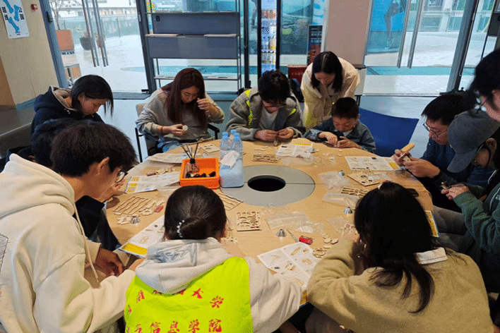 2025年9月24日,在西南石油大学社区志愿服务基地的活动室中,电信院志愿者们与社区小朋友围坐成圈,开启了一场“科技手作之约”。依托电信专业优势,志愿者们将木质模型拼搭与轻量科普结合:教低龄儿童组装简易摆件时,同步讲清 “零件拼接的结构逻辑”;带学龄儿童调试太阳能卫星模型时,用“阳光怎么让小卫星‘动’起来”的趣味提问,把电信电路原理融入实践。