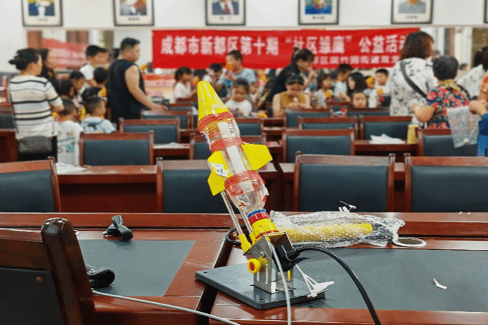 组装完成后就是最“紧张刺激”的水火箭试飞行阶段,看谁的水火箭飞得更高,小朋友们可以观察水火箭的发射过程,在实际运用中进一步了解压强和动能的原理,在比赛中取得优异成绩的小朋友还获得了精美小礼品。在展示和分享环节,志愿者还让小朋友们尝试改变整个过程中,小朋友们不仅学到了技术知识,还培养了自主解决问题的能力。