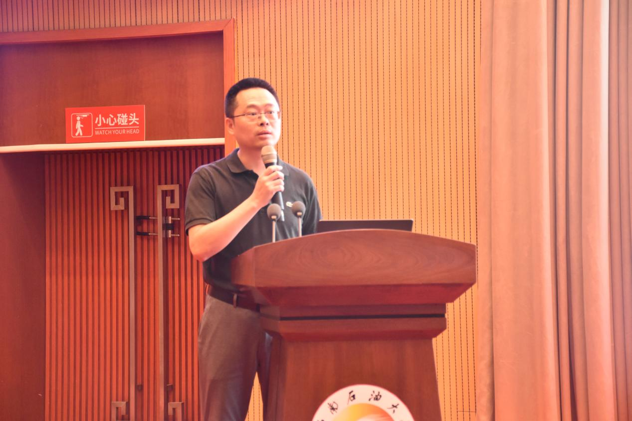 院长助理、网络空间安全教研室主任张晓均进行考研分析时指出,学院作为省内首批获批网络空间安全学科硕士点的省属高校,已构建“大数据安全”“网络与系统安全”“油气工业信息安全”三大学术型硕士特色方向及人工智能安全、数据安全等专业型硕士培养体系,课程紧密对接密码学、区块链安全等行业前沿。随后他向同学们展示了学院老师和学长们的优秀学研成果,并指出学院去年启动“培优计划”,通过开设130个科研项目、配备考研自习室及导师全程指导等助研方式,鼓励同学们脚踏实地,认真备考,早日实现自己的理想。