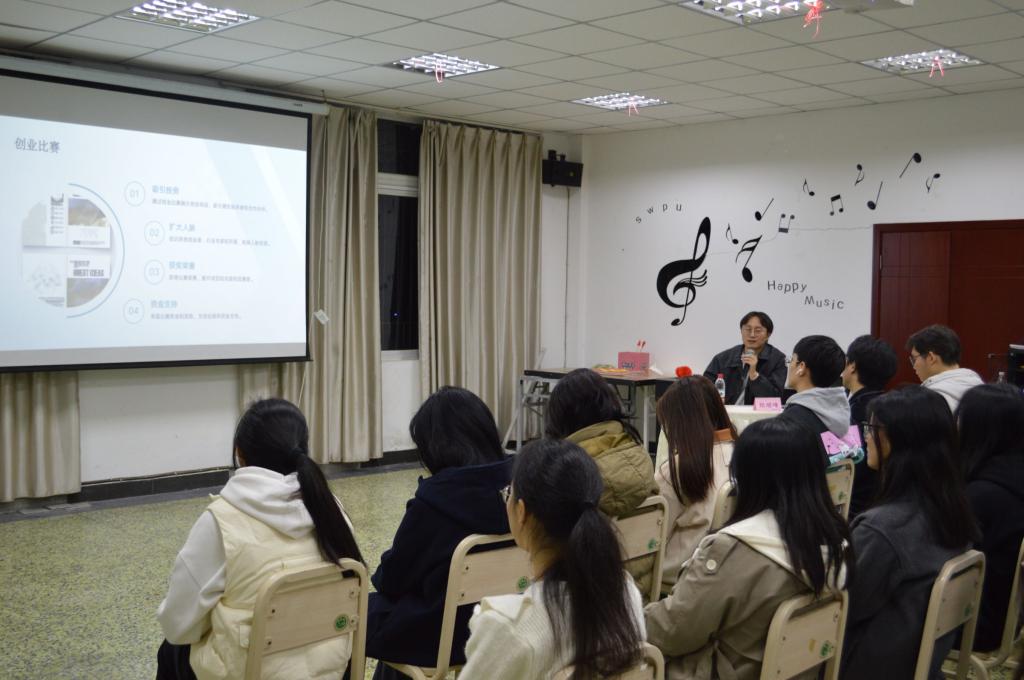 随后,郑顺锋先生从项目的创意构思、市场调研、商业模式设计、团队建设以及财务规划等多个方面,为同学们详细讲解了创业项目的实际操作流程。他不仅提供了宝贵的创业建议,还结合具体的成功案例,为同学们分析了创业过程中可能遇到的各种问题和挑战,并分享了应对和解决这些问题的有效方法。