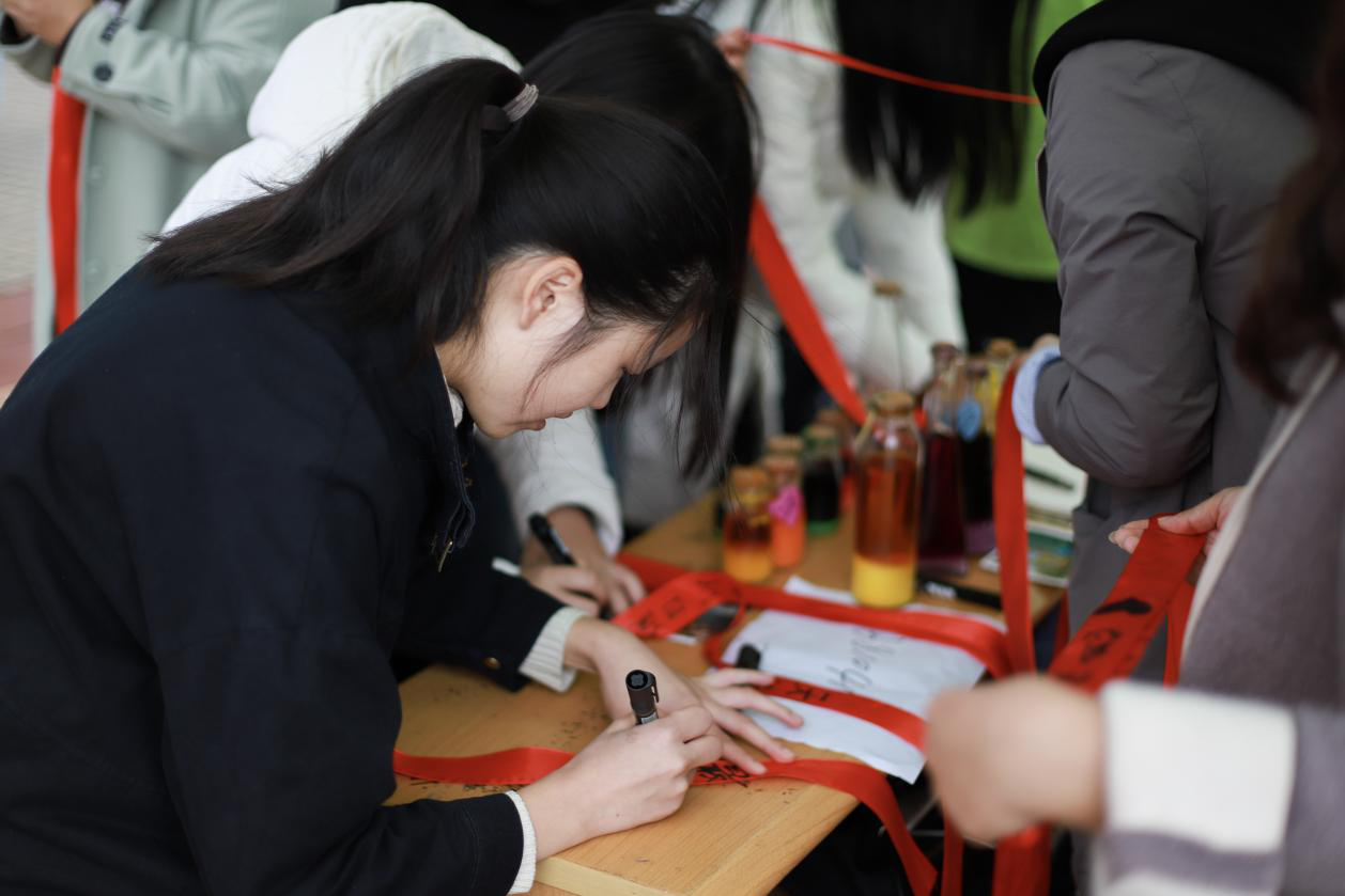 同学们在写祝福丝带