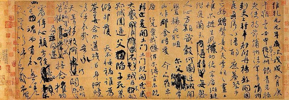 此幅字写得凝重峻涩而又神采飞动,笔势圆润雄奇,姿态横生,纯以神写,得自然之妙。有道是:“晋人尚韵,唐人尚法,宋人尚意,元、明尚态。”