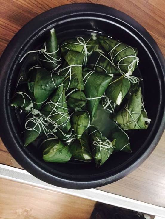 活动开始的同时,我们汉林毓秀小理事为大家做的小粽子也被会长张鑫一串一串放下锅煮。