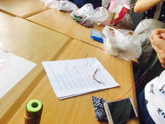 有些同学很厉害,一个人便得到了许多小礼品。游戏环节结束,我们还有一个神秘礼物环节——击鼓传小熊。主持人把小熊丢给观众,观众们传递,会长张鑫喊停。三轮完毕,有三位同学获得了我们的神秘礼品——粽子一串。发完神秘礼品活动结束。观众们还不想离去,跟着汉林毓秀的小理事们体验包粽子编五彩绳,自己手作的还可以自己带走做纪念。今天的端午活动圆满结束!