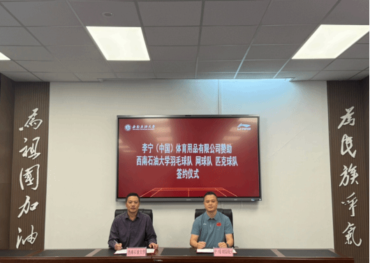 10月14日下午,李宁(中国)体育用品有限公司赞助西南石油大学羽毛球队、网球队、匹克球队签约仪式在体育学院举行。李宁羽网匹事业部西南区大区经理李明一行4人,体育学院相关负责人出席。