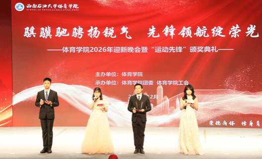“骐骥驰骋扬锐气,先锋领航绽荣光”。12月28日晚,体育学院2026迎新晚会暨“运动先锋”颁奖典礼在学生活动中心201演播大厅隆重举行,学院党政领导、全体师生欢聚一堂,共赴青春盛宴,共迎马年新春。场馆内灯火璀璨、掌声如潮,一场融汇青春热血与榜样力量的盛会就此拉开帷幕。