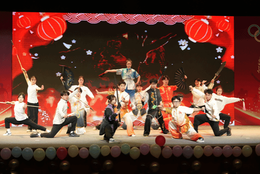学院团委学生骨干合唱压轴登场,激昂的声响彻场馆,铿锵有力的旋律里,满是对未来的无限憧憬;与此同时,灵动矫健的舞龙表演同步上演,金黄的巨龙在舞台上腾跃盘旋、气势恢宏,每一次翻跃都象征着全院师生团结一心的磅礴力量。歌声与龙舞交织,奏响了砥砺前行、共启新程的奋进乐章。