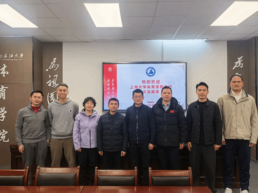 为深化校际交流合作,共同推动体育学科建设与人才培养的高质量发展,2026年1月8日下午,西南石油大学体育学院与上海大学体育学院在我校体育馆113会议室举行交流座谈会。会议由西南石油大学体育学院院长石金亮主持,上海大学体育学院党委书记许烁、副院长徐娜、田径高水平队教练员葛晓栋,以及我院相关领导与教师代表共5人参会。
