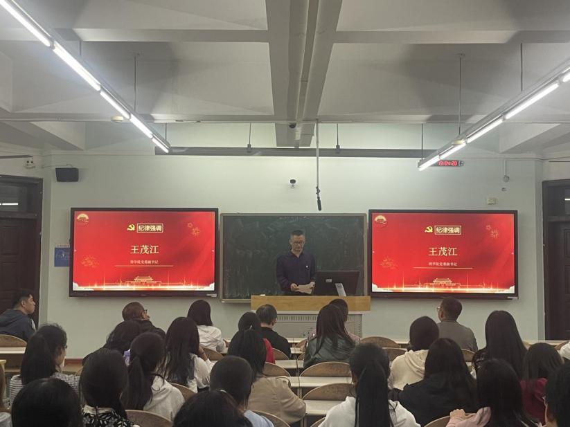 理学院党委副书记王茂江在发言中强调了培训纪律,同时提倡作为先锋模范应多思考、勤做事,积极主动、勇于担当、敢于作为。他预祝培训圆满举办、学员顺利结业。