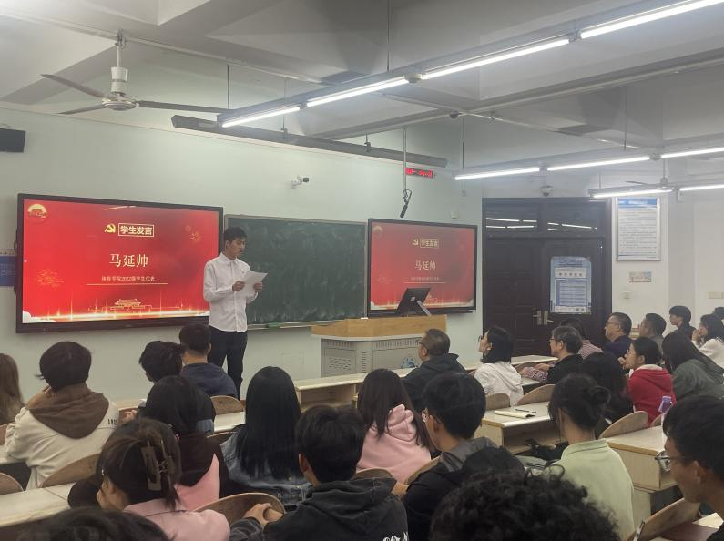 在开班仪式上,马克思主义学院团总支副书记李锦韬介绍了本次培训课程安排,包括专题理论集中授课、志愿实践、小组研讨、自主学习以及结业考核等环节。同时,体育学院本科2022级学生马延帅作为培训学员代表发言,从党的发展、历史成就谈到入党初心和志向目标,并代表学员宣誓将积极认真参加培训,严格遵守培训要求和纪律,在培训学习过程中不断坚定理想信念和入党决心。