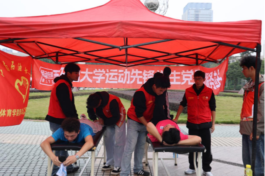 志愿服务一线的体育学院学子也是赛场中温暖的支撑。针对赛后选手肌肉酸痛等需求,学院接续“运动先锋”系列主题志愿服务活动,组织学生志愿者搭建赛后恢复服务点,通过科学按摩手法为参赛师生缓解疲劳。同时,数名学生参与校级马拉松志愿活动,活跃在马拉松全程各项岗位,以饱满热情和高效行动保障赛事顺畅,用实际行动践行育人理念,彰显体育学子的责任与担当。