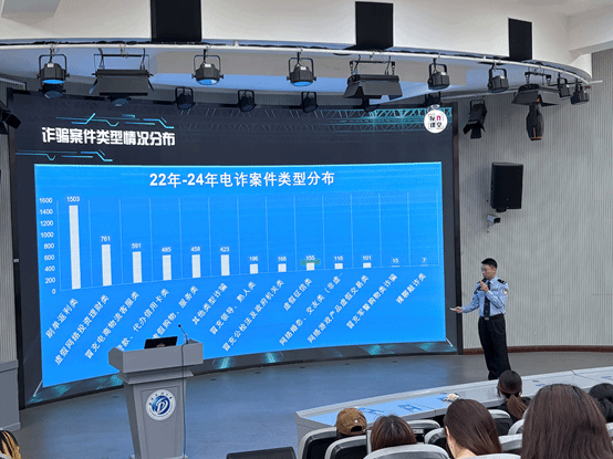 讲座现场,主讲民警围绕近期全国及成都本地高发的电信网络诈骗类型展开详细讲解,重点剖析了刷单返利、虚假网络贷款、冒充客服退款、冒充公检法等典型诈骗案例,通过真实事例,还原了受害人从被诱骗、转账到醒悟、报警的全过程,用触目惊心的财产损失数据和鲜活案例,让在场师生深刻认识到电信网络诈骗的隐蔽性与危害性。同时,结合数据分析,民警向师生科普了诈骗高发时段、作案手法及防范要点,提醒大家牢记“三不一多”原则,即不轻信陌生来电和信息、不透露个人及银行卡信息、不向陌生账户转账、遇到疑问多核实。此外,民警还现场演示了虚假APP、钓鱼网站的识别方法,指导师生下载使用国家反诈中心APP并开启来电预警功能,从技术层面筑牢反诈屏障。