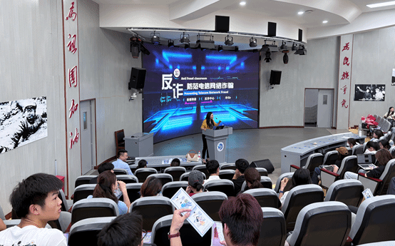 互动答疑环节,同学们结合自身遇到的可疑情况积极提问,主讲民警逐一耐心解答,现场互动热烈,进一步加深了师生对反诈知识的理解与掌握。活动期间,工作人员还向师生发放了反诈宣传手册,呼吁大家既要提升自身防范能力,也要主动争做反诈宣传员,将所学反诈知识分享给家人、朋友,带动身边人共同抵制电信网络诈骗,形成全民反诈的良好氛围。