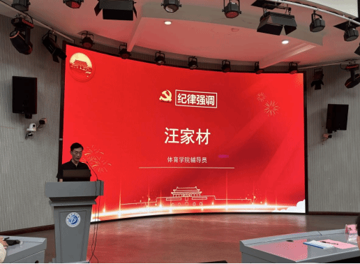 体育学院辅导员汪佳材介绍了培训流程,并强调了纪律要求。