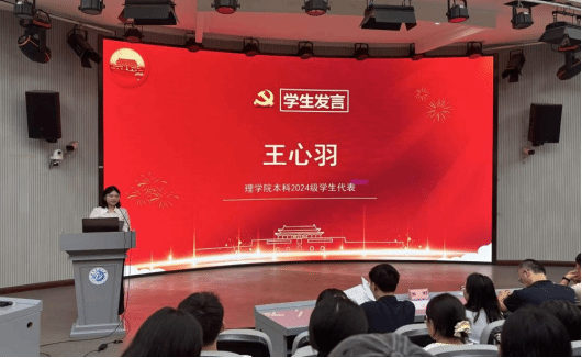 理学院2024级本科生王心羽作为学员代表发言。她分享了从向往红领巾到成为入党积极分子的“追光”历程,提及50年党龄的奶奶对自己的榜样影响,并代表全体学员倡议:严守培训纪律、认真学习,将理论转化为行动,以党员标准要求自己,争做同学表率。