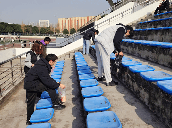 本次课程以“劳动砺初心 实践促成长”为主题,并且杨冬琴对本次实践的意义、任务分工及安全事项进行了详细说明,强调要将理论学习成果转化为服务社会的实际行动。随后,学员们分组行动,手持垃圾袋等工具,对操场周边、看台、绿化带及跑道进行全面清扫。大家分工明确、配合默契,认真清理垃圾、杂草和卫生死角,用实际行动践行“不怕脏、不怕累”的劳动精神。