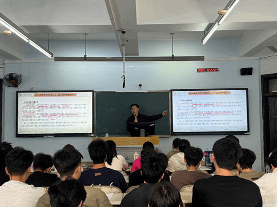 辅导员汪佳材围绕大学生创新创业训练计划与中国国际大学生创新大赛两大核心赛事展开,系统讲解赛事政策、申报流程与评审标准,重点解读大创项目的育人价值、选题方向与结题要求,同时梳理国创赛最新导向,帮助同学们理清参赛思路、找准发力方向。