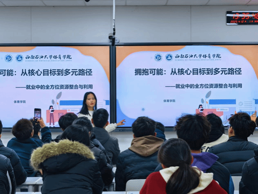 为帮助2026届毕业生精准把握就业形势,高效整合就业资源,拓宽职业发展路径,12月1日上午,体育学院分两场同步召开“拥抱可能:从核心目标到多元路径”就业指导主题班会。体育教育专业2026届毕业生在思学楼C210参会,体育教学专业硕士2026届毕业生在博学路B101参会,辅导员汪佳材、庄晴宇分别担任授课人。