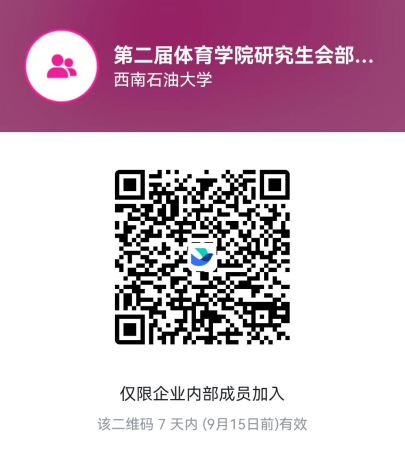 想了解更多选拔信息,请加入第二届体育学院研究生会部门工作人员选拔飞书群(下图二维码)面试具体安排也将在此群通知。