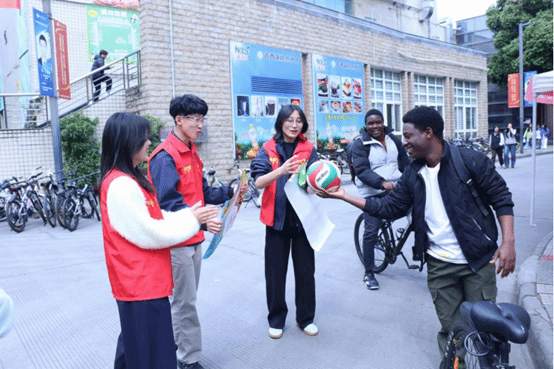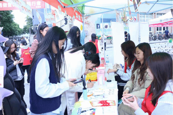 此次活动以雷锋精神践行与成长陪伴关怀为核心,设计了丰富多样的线上线下互动环节,让公益行动充满趣味与温度。线下设置“关怀漂流站”收集融合排球知识、运动科普的书签与漂流卡,通过“希望树”手印画布让同学们共同寄托美好祝愿,还开设雷锋月剪纸、排球主题漆扇等DIY板块;线上同步开启作品征集与转发助力活动,参与者收集爱心值即可为困境儿童捐赠物资,既唤起了全校师生对乡村留守儿童运动资源匮乏问题的关注,也让公益善意在校园中持续传递。
