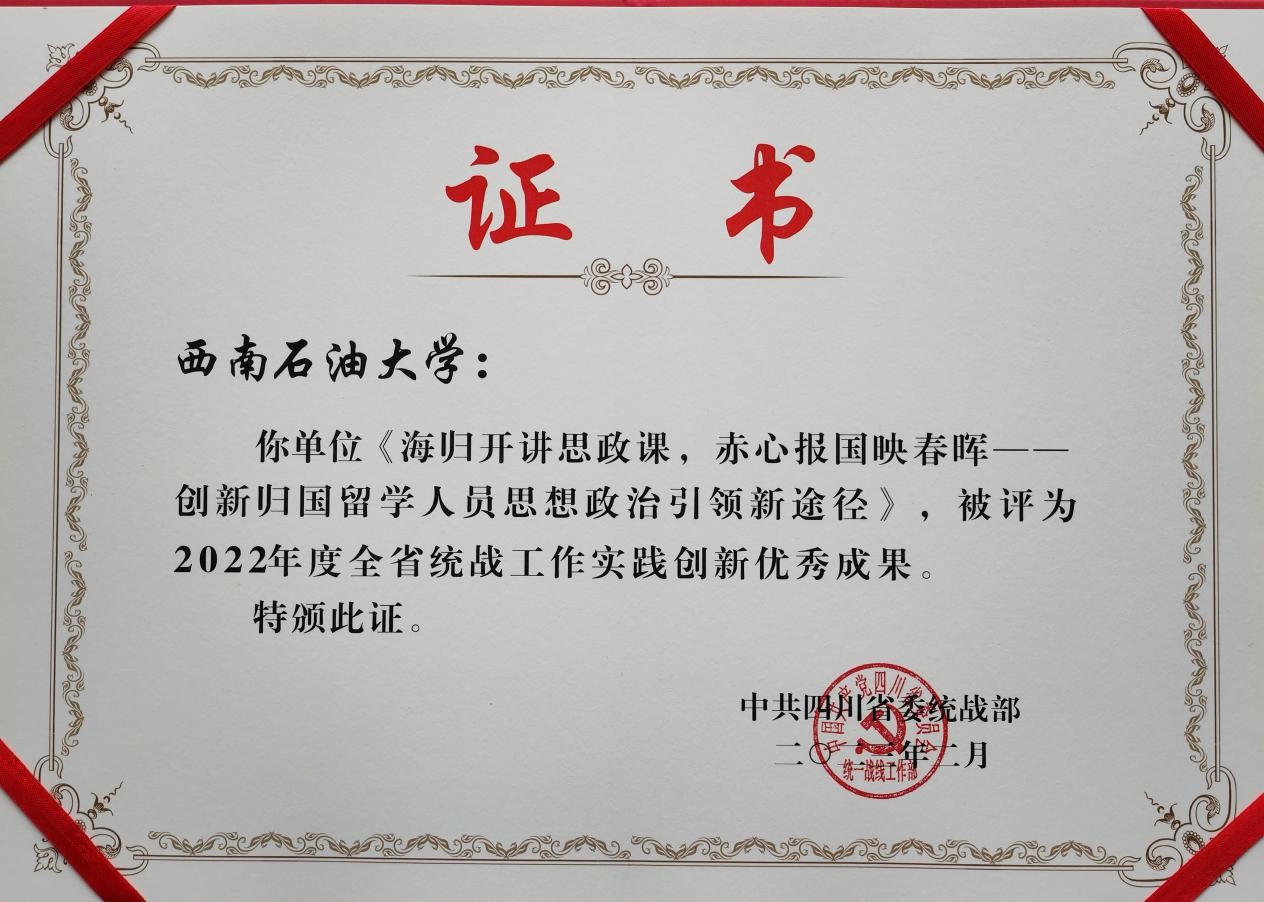 会议对四川省统战工作先进集体和先进个人进行表彰,我校党委统战部被评为“四川省统战工作先进集体”,并获得一项“2022年度全省统战工作实践创新优秀成果”,受到大会表彰。我校已连续四年获得省委统战部表彰。