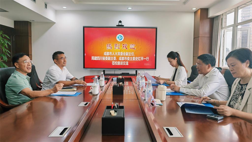 9月14日,成都市人大常委会副主任、民建四川省委副主委、成都市委会主委史红平,民建成都市委会专职副主委王萍,组织处处长李君懿一行来校座谈交流。校党委书记张烈辉,党委常委、统战部部长蒲勇出席座谈。