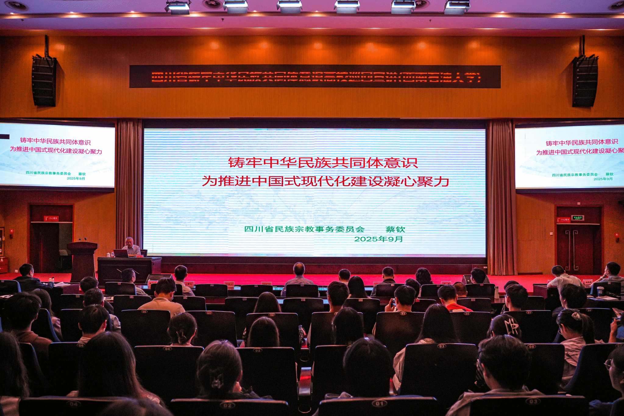 9月28日,由四川省民族宗教事务委员会、四川省教育厅、共青团四川省委主办的四川省铸牢中华民族共同体意识高校巡回宣讲在我校举行。四川省铸牢中华民族共同体意识高校巡回讲堂三年行动宣讲团成员、四川省民族宗教事务委员会二级巡视员蔡钦作宣讲,校党委副书记丁林主持并作总结讲话。