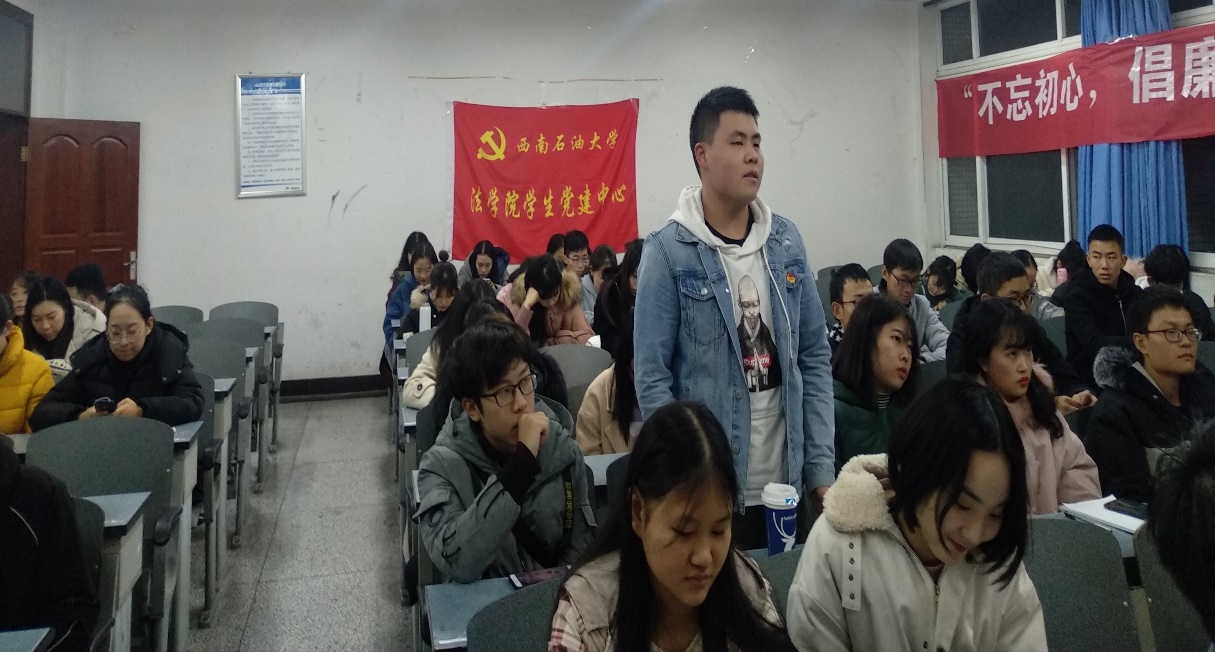 在颁奖结束后,法学院团委学生会干部以及18级、19级的班级班委发表了自己对法学院本次开展的”不忘初心,倡廉治学”主题教育活动的心得体会,并就自身的现实情况说明了自己将如何在学习和生活中贯彻“不忘初心,倡廉治学”这一崇高理念。