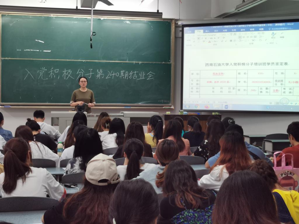 2021年5月15日20:30,西南石油大学法学院第240期入党积极分子培训班第1组结业会在博学楼A501举行。本次结业会,由杨可瀚老师主持。