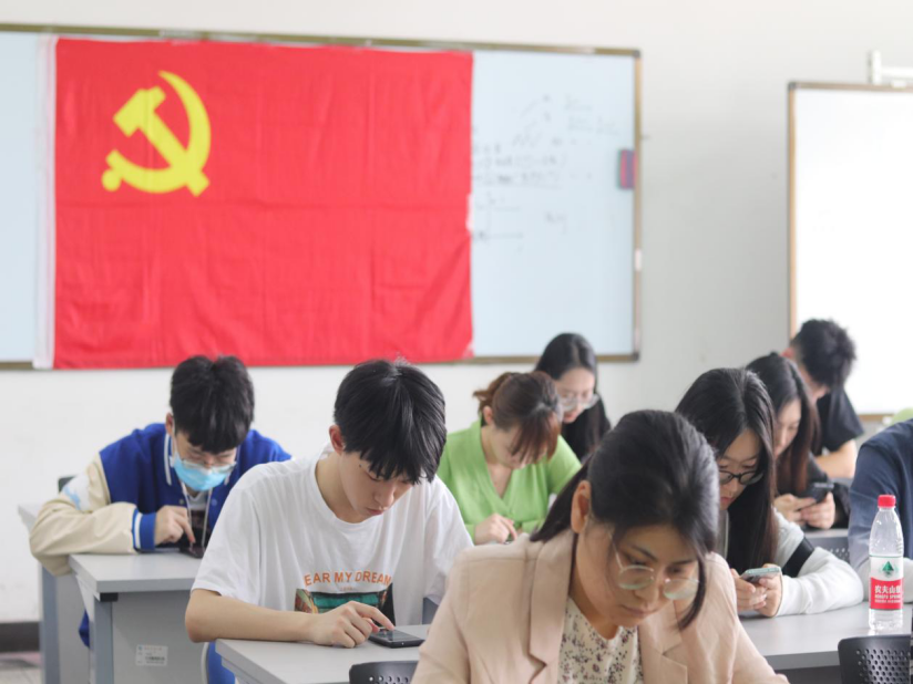 受场地限制,各党支部组织部分成员于教室参与统一线下答题,无法到场的同学们也在各自寝室或者利用课间休息时间进行线上答题。活动开始后,各党支部同学进入界面进行答题,细细斟酌后进行答案选择。竞答题目紧紧围绕我党的发展历史展开,简短的题目涵盖多个方面,帮助同学们在答题中进一步认识到历史发展潮流、历史发展经验以及历史的发展规律。