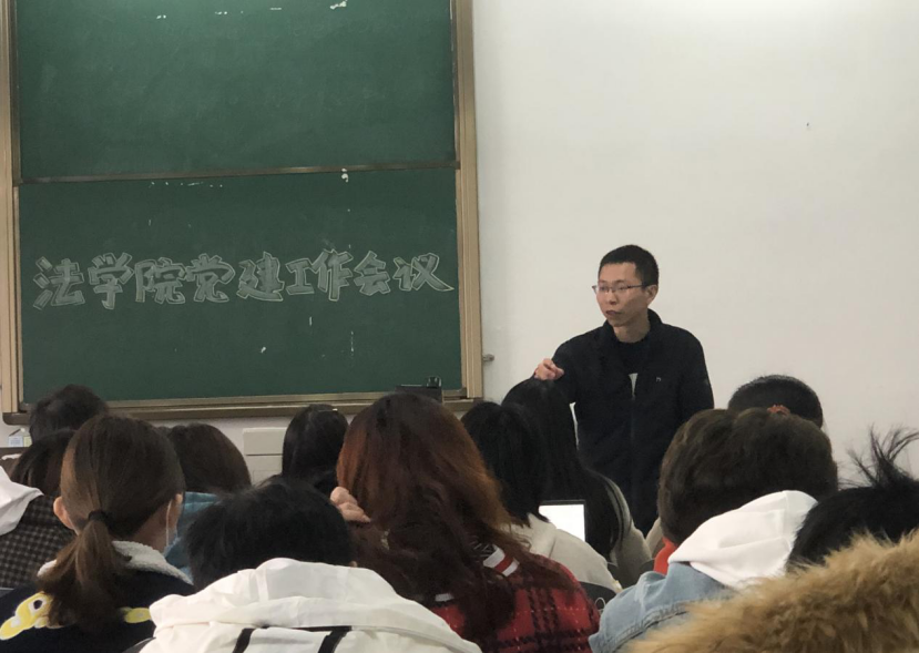 会议伊始,平老师宣布学生党建中心和学生公寓党员工作站合并的决定,这一安排旨在提高法学院学生党建服务效率,使人员安排更加合理,真正落实“责任到人”发挥个人最大力量。同时,平老师对开展入党积极分子培训班、完善现有积极分子库、发展预备党员等相关党建工作拟定初步发展方针并做出基本规划,强调发挥各个党支部对入党积极分子的考察和推举作用。除此之外,平老师提出对筹办“中国共产党建立100周年”的期许,并提出自己的建议,鼓励大家以脚踏实地的态度结合新型媒体形式开展,以活动的趣味性激发同学们参与活动的积极性,使“敬党、爱党、护党”的思想在同学们中蔚然成风。