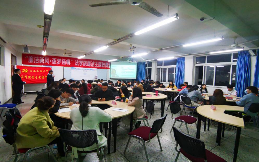 青年是社会主义的建设者和接班人,肩负着民族复兴的历史重任,青年大学生则是未来高素质人才的后备力量。对大学生开展廉洁教育,让他们形成廉洁意识,使他们在踏入社会之前具有抵抗腐败的免疫力,对社会的和谐发展有着深远的战略意义。10月中旬至11月底,由西南石油大学法学院党委、纪委主办,学生党建中心与学生公寓党员工作站承办的“廉洁新风,逐梦扬帆”廉洁教育主题活动顺利举行,整个活动历时一个半月,廉洁精神深入人心,参与面广反响良好。