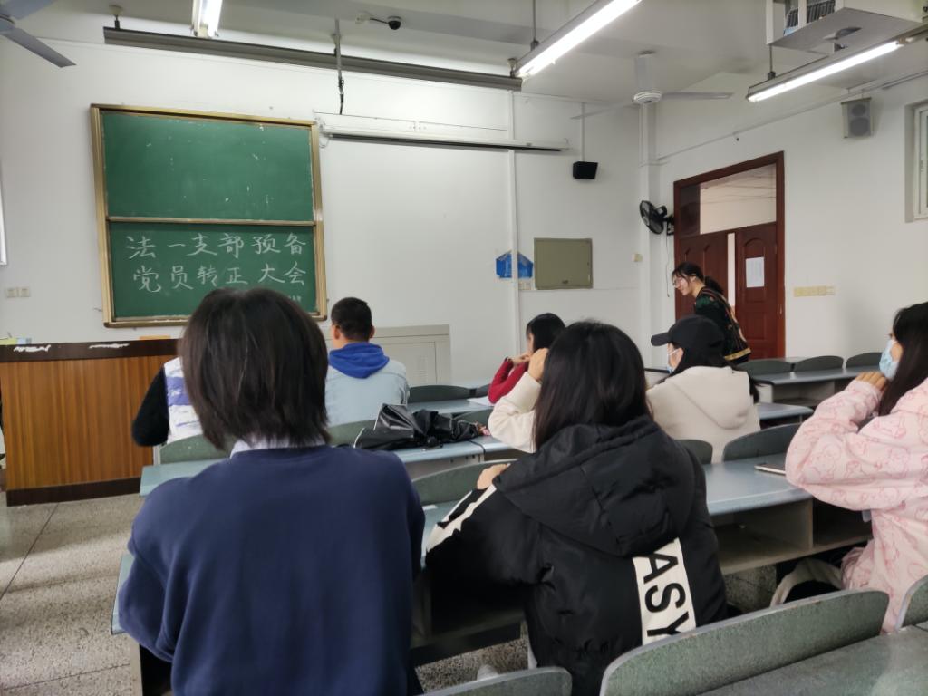 为做好发展党员工作,进一步加强党员队伍建设,11月5日下午13点,法学院法学专业学生第一党支部在博学楼A502召开了预备党员转正大会,会上讨论了关于董子怀和何红玉两名预备党员的转正事宜。会议法学院法学专业学生第一党支部支部书记杨可瀚老师主持召开,支部委员谷雨芯同志负责监票和计票,支部全体同志出席参与。