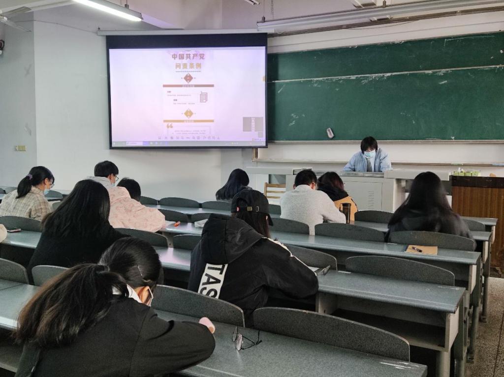 为增强学生党员责任意识,把从严治党的政治承诺转化为制度与行动的坚强意志,法学院法学专业学生第一党支部召开了学习《中国共产党问责条例》专题党组织生活。本次党组织生活于11月11日下午15:40在博学楼B502召开,由支部马捷同志为全体同志进行讲解,并由法学院法学专业学生第一党支部书记杨可瀚老师进行总结。