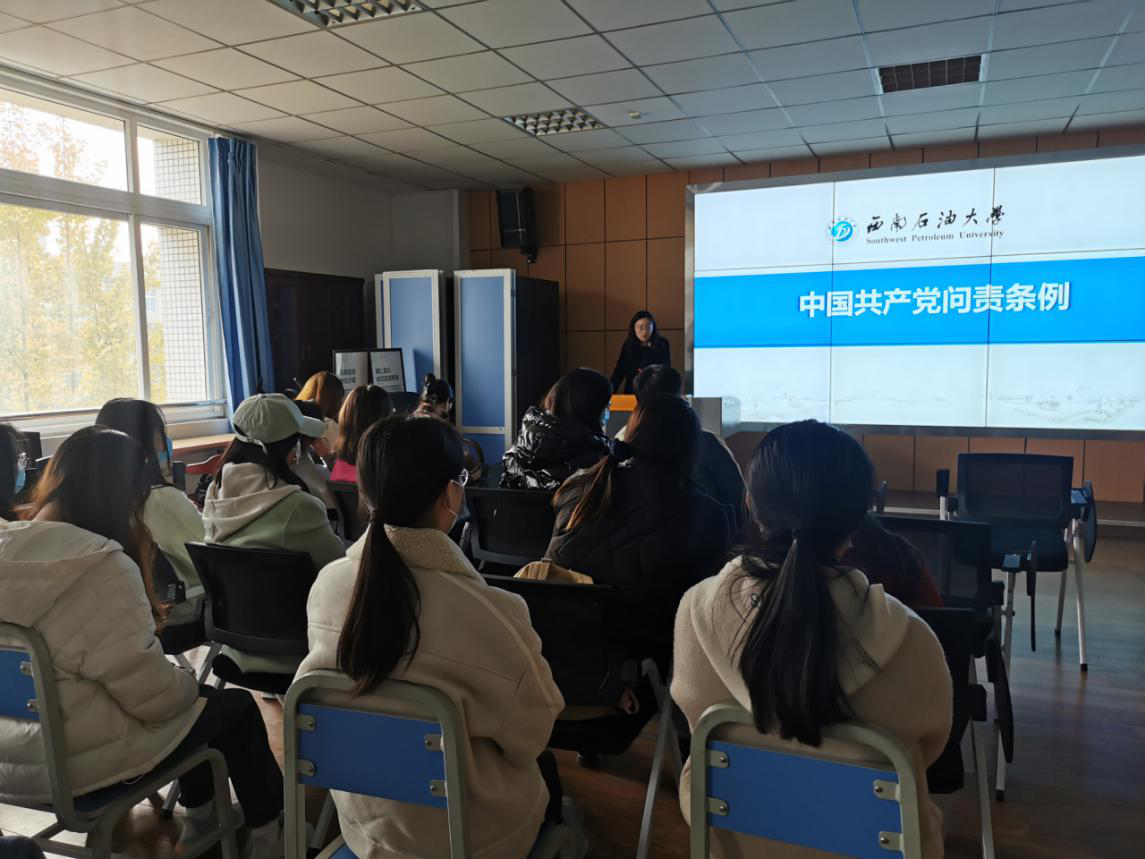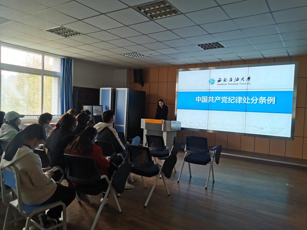 11月11日,社会工作(本科)学生党支部在博学楼A406召开专题学习会,全体党员同志共同学习《中国共产党问责条例》及《中国共产党纪律处分条例》,本次专题学习由支部书记肖丹老师主持。