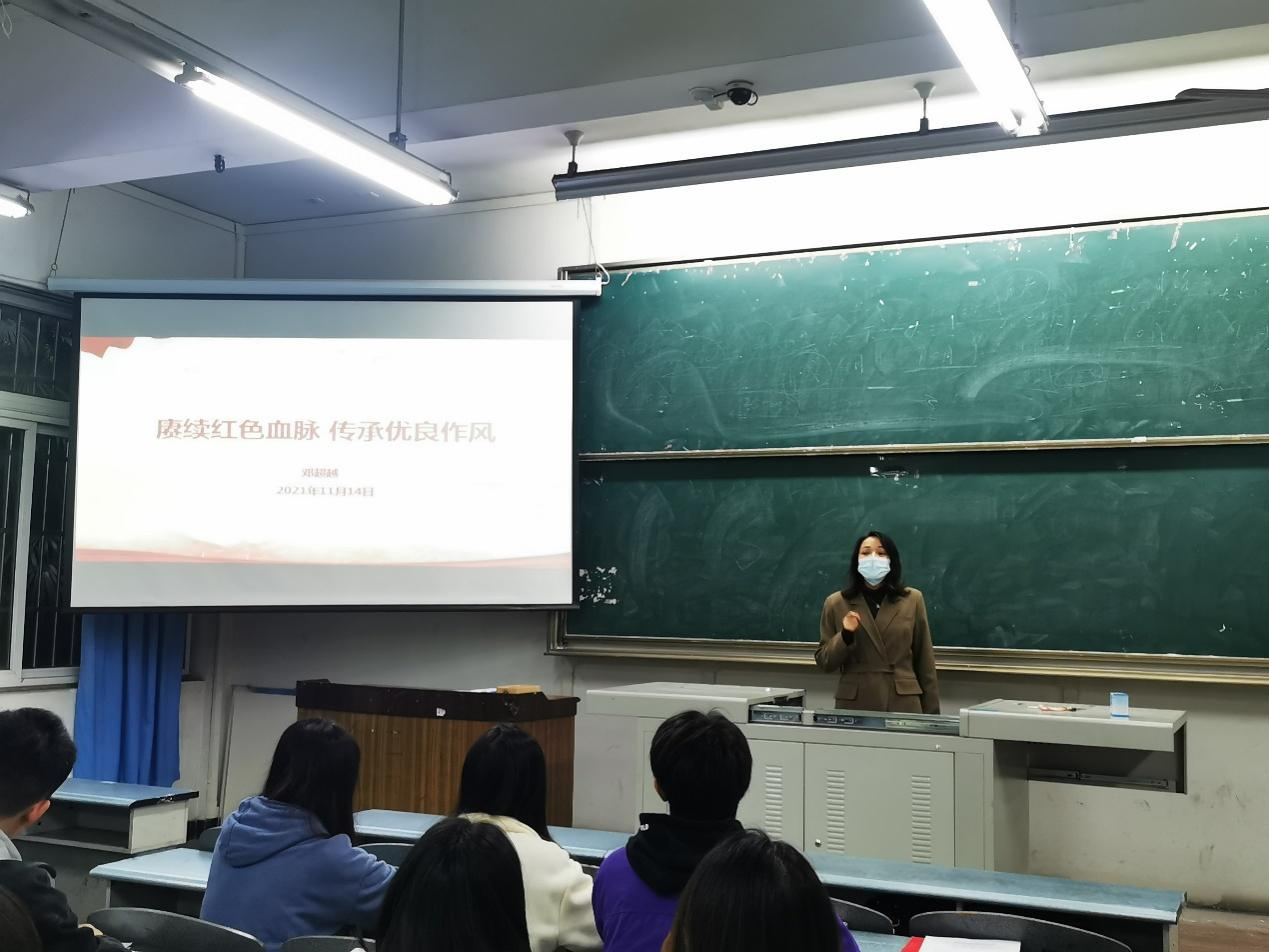在庆祝中国共产党成立100周年之际,中共中央政治局6月25日下午就“用好红色资源、赓续红色血脉”进行第三十一次集体学习。中共中央总书记习近平在主持学习时强调,红色资源是我们党艰辛而辉煌奋斗历程的见证,是最宝贵的精神财富;红色血脉是中国共产党政治本色的集中体现,是新时代中国共产党人的精神力量源泉。在此背景之下,法学专业学生第二党支部积极响应党的号召,于2021年11月4日在博学楼B102开展了“赓续红色血脉,传承优良作风”党课教育活动,支部书记邓超越、支部全体党员参与会议。