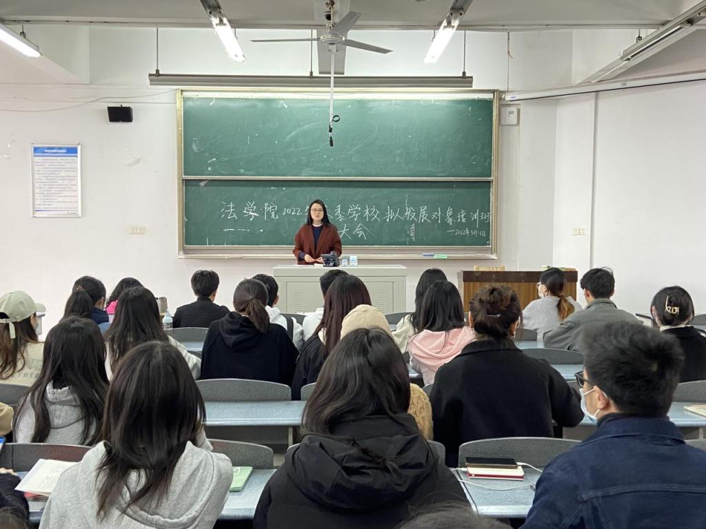 为适应新形势下党员教育的需要,加强拟发展对象对党的认识,端正入党动机,保持良好的学习态度,强化对全体学员的思想教育,3月31日下午14:30法学院召开了2022年春季学期学校拟发展对象培训班动员大会。本次动员大会全体人员按时到场,由杨可瀚老师主持。