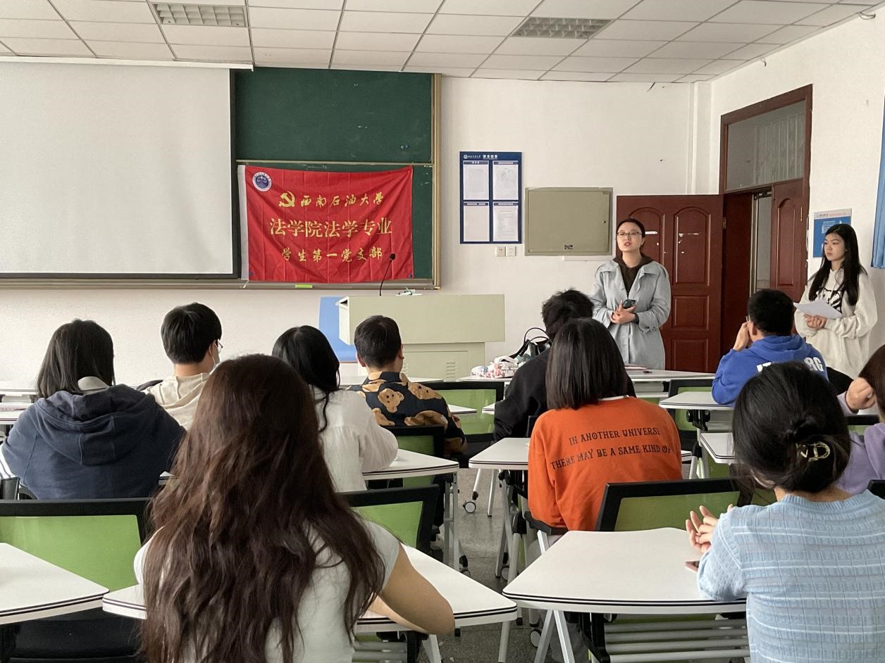 为做好党员发展工作,进一步加强党员队伍建设,增强党员队伍生机与活力,法学院法学专业学生第一党支部于5月20日14点在博学楼A501召开了2022年春季学期预备党员转正大会。本次会议由法学院法学专业学生第一党支部书记杨可瀚老师主持召开,参加大会的党员同志共21人,其中正式党员6人,预备党员15人。会上讨论了王倩等7位预备党员同志转正事宜。