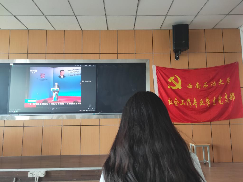 活动开始,主持人为我们介绍了《习近平谈治国理政》的重要地位,它是中国共产党人的政治底色、生生不息的力量源泉,同时为我们拓展了第三卷所包含的著作,加深了我们对《习近平谈治国理政》的理解。主持人从文化书香和人民情味的角度来深入讲解,引导大家感悟传承中华优秀传统文化,感受深厚的文化底蕴和历史哲理,深刻感悟“人民”二字在总书记的思想中具有基础性、根本性的地位和作用。随后,主持人为大家播放了相关新闻联播的视频,展现了不同国家领导人对《习近平谈治国理政》思想的评价,称赞其与时俱进,高度评价了《习近平谈治国理政》思想。