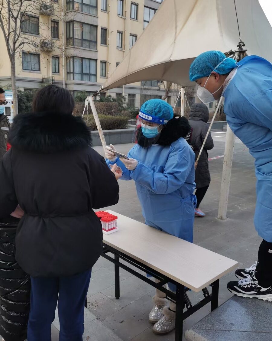 图一:邱玉竺同志协助引导核酸检测