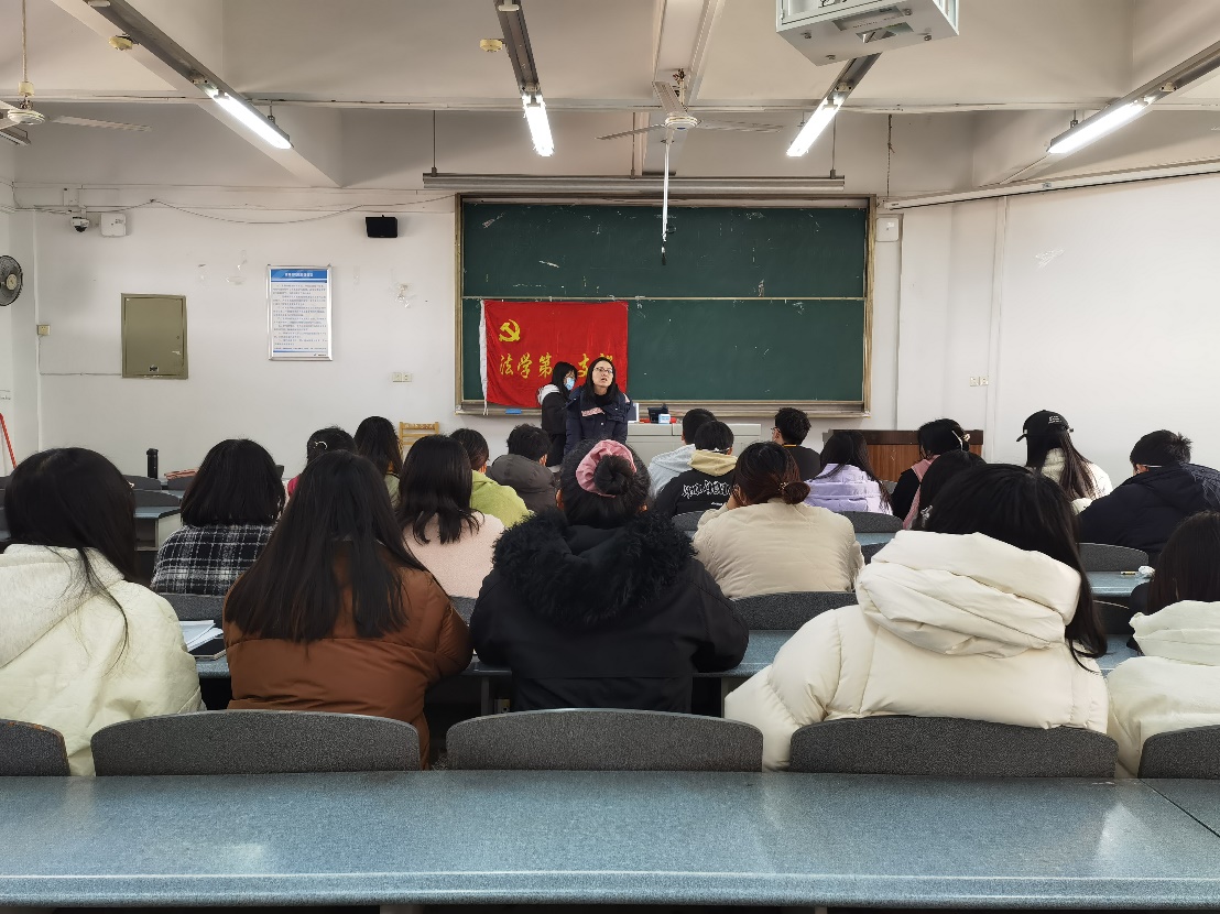 为做好发展党员工作,进一步加强党员队伍建设,增强党员队伍生机与活力,法学院法学专业学生第一党支部于12月8日13时在博学楼A501召开了2022年秋季学期预备党员转正大会。本次会议由法学院法学专业学生第一党支部组织委员高净慈同志主持,党支部全体同志积极参与。会上讨论了邱静仪等六位预备党员同志转正相关事宜。
