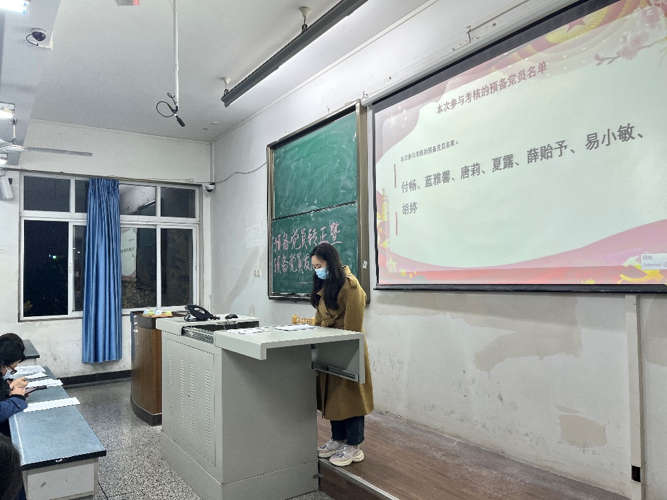 会上,先由6位预备党员同志相继宣读转正申请书,汇报预备期一年以来的思想以及行动上的情况。预备党员蓝雅馨表示:自己在一年预备期中坚定理想信念,积极参与支部活动,利用课余时间和假期时间,通过观看纪录片和讲座视频的方式保持学习。在研究生期间能逐渐适应学习生活的新节奏,积极面对焦虑情绪,更多地着眼于实际的学习和科研推进,以高标准严要求对待自己。但是也意识到自己的很多不足,如思想上,在理论方面的学习仍然不足并且时常不能沉下心来进行阅读与总结,最后也表示会不断改正和进步。今日特向党组织提出申请,转为正式党员。随后,王渝孜、樊文麒等9位发展对象向党组织汇报被列为入党积极分子以来在思想、工作、学习、生活等方面的情况,并进行了全面深刻的自我批评,由衷的表达了对中国共产党的热爱与不懈追求,以及加入中国共产党的诚恳愿望。最后,由各自的入党介绍人向党组织说明预备党员们在预备期间对其思想觉悟、学习成绩和生活工作上的考察情况,以及对发展对象被列为预备党员的期许和赞同,参会党员也进行了充分的讨论,发表对相关人员的转正和发展意见。