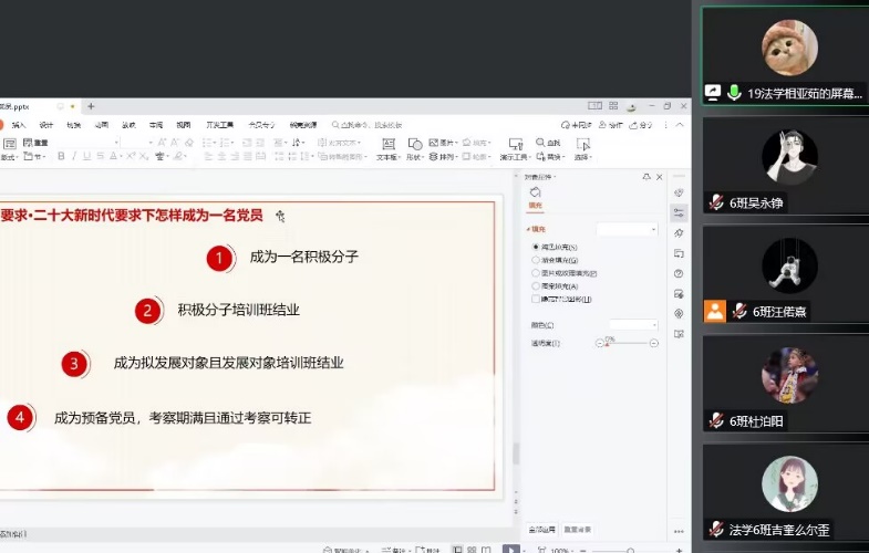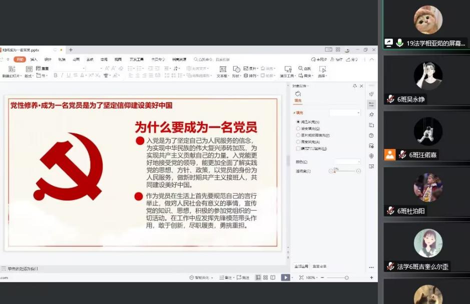 党的二十大报告指出,要增强党组织政治功能和组织功能,坚持大抓基层的鲜明导向,把基层党组织建设成为有效实现党的领导的坚强战斗堡垒,激励党员发挥先锋模范作用,保持党员队伍的先进性和纯洁性。这是对基层党组织和党员提出的总体要求。为让同学们充分了解党员责任,知晓党员义务,提高党性修养,12月15日下午法学院学生党建工作站在线上组织开展了面向法学院2022级同学的“党员进团——如何成为一名党员”活动。